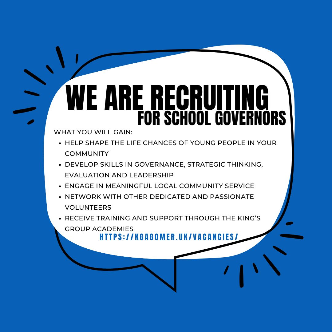 As part of King’s Group Academies, we benefit from shared training, expertise, and support across our trust. We are looking for governors who reflect the diversity of our community and who bring fresh ideas, energy, and a genuine commitment to shaping our future. Our existing governors provide a strong balance of support and challenge, and we are keen to build on this strength as we continue to grow.