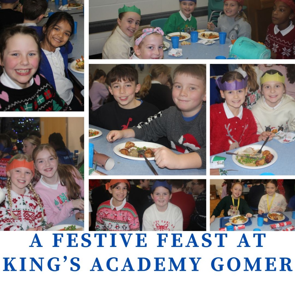 The festive atmosphere was enhanced by lovely crackers kindly provided by the PTA, festive music playing throughout, and meals served at the tables by the brilliant Team Gomer. Another festive triumph and a real highlight of the season. Go Gomer!