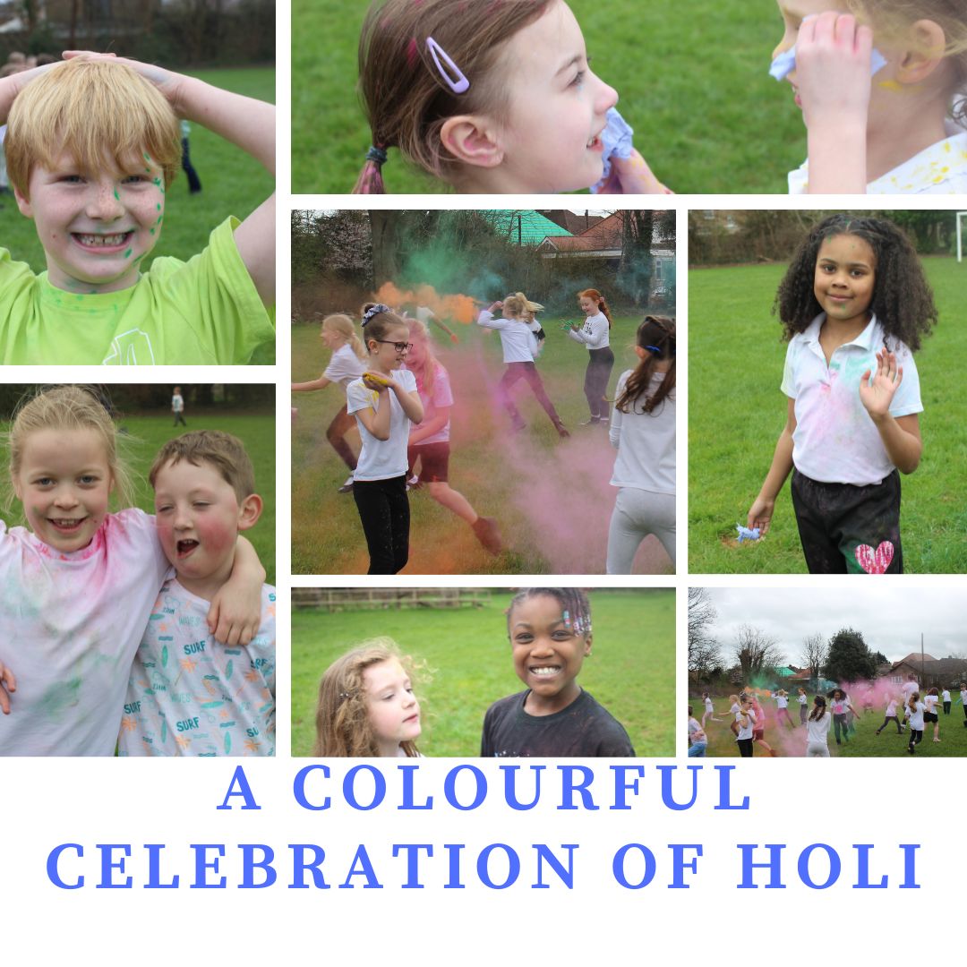 Our school playing field turned into a vibrant rainbow on Tuesday as we celebrated Holi, the Hindu Festival of Colours. Throughout the day, children learned about the meaning behind this joyful festival, which is celebrated by Hindus around the world to mark the arrival of spring and the triumph of good over evil. Holi usually takes place in March, following the full moon, and is known for its bright colours, laughter and sense of togetherness.