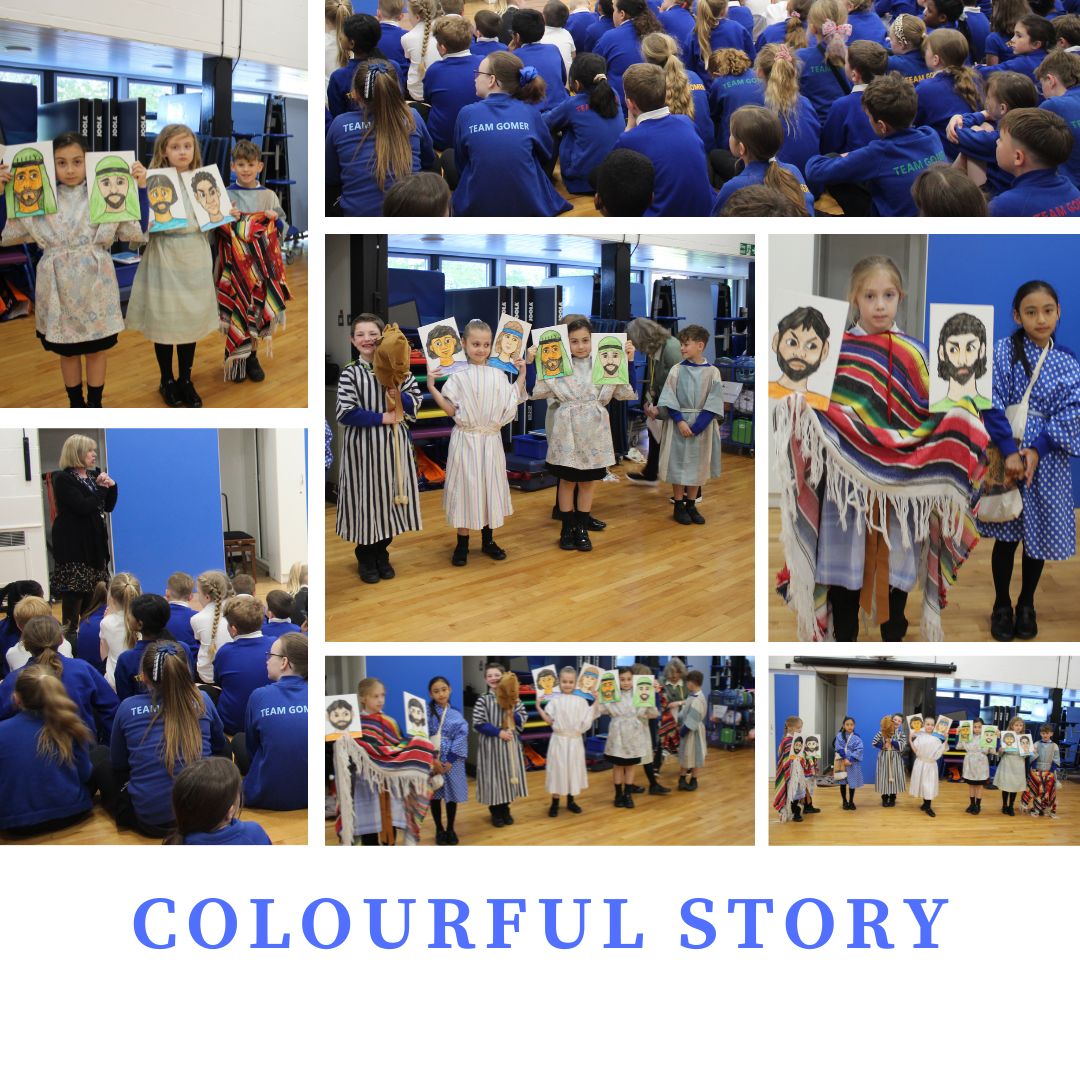 On Monday, we were delighted to welcome the Open the Book team from St. Mary’s Church into school. They shared the much-loved story of Joseph and his Technicolour Dreamcoat in a lively and engaging way.